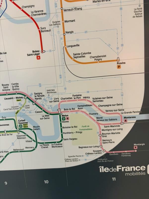 このピンク色の路線(R線)のFontainebleau Avon駅が下車駅。しっかり白地のエリアの中に収まっている。