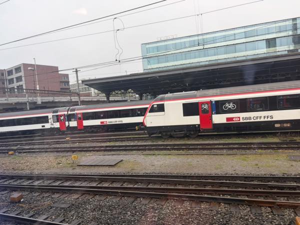 スイス・ドイツ・フランスの国境の街「Basel(バーゼル)」です。スイス国鉄の車両を見ると熊太郎的にはホームグラウンドに帰ってきた気持ちですよ。