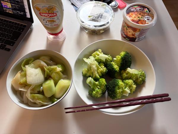 帰りにFranprixでブロッコリーやネギなどを買い、今日出かけるときに見つけた近所にある日本食材屋さんで冷凍うどんと白だしを買い夜は自炊でうどんを作って食べました。