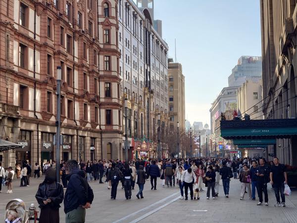 歩行街になっている南京東路に入ります。時期によっては路面が見えないくらい混雑するエリア。
