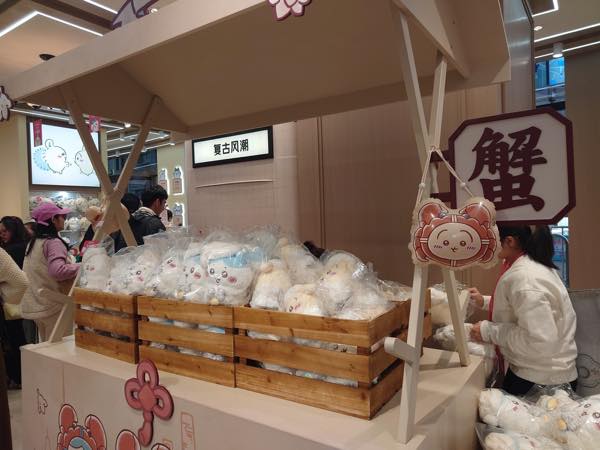 この辺りが限定品ゾーンかな。中華服ちいかわや上海蟹ちいかわが売られています。