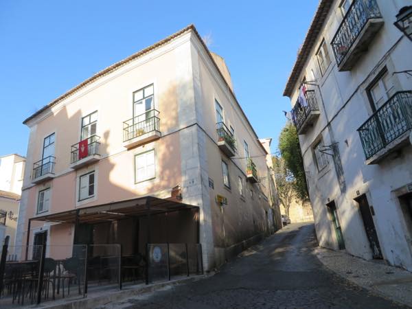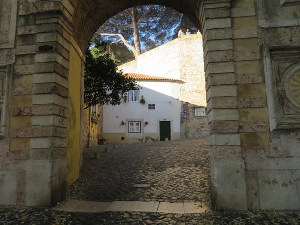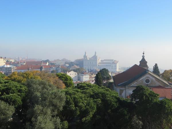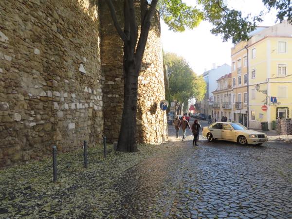 遠くにさっきの教会が見えます。 トラム28番線にてリスボン中心部に戻る途中、サンジョルジュ城付近で下車し、城の入り口に向かう。