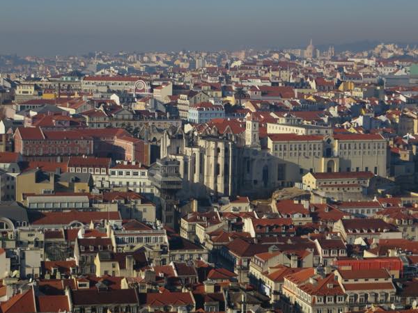 再び中心部。真ん中にさっき見た展望エレベーターとその裏に屋根がない教会が見える。1755年の大地震で崩壊してしまった屋根。リスボンは地震がある地域なんだよね。