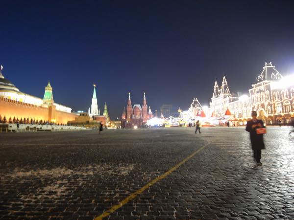 夜の赤の広場。綺麗だけれど寒い(痛い)!!