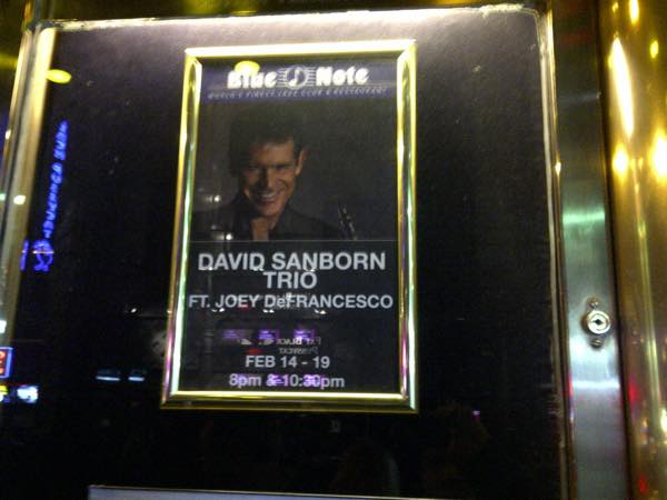 翌日は休日。マンハッタン、いや、メェンヘッーテェーン(現地風発音)を満喫すべく地下鉄を駆使して同僚と観光。夜何を食べようかという相談に、持参のipadでいろいろ調べてみると、おーナイスタイミングでDavid Sanborn のライブが本場のBlue Noteで今晩やるじゃないですか!(サンボーンは2024年にこの世を去ってしまいました)